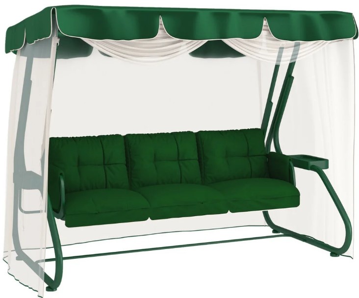 У нас вы можете купить матрас на садовые качели Leset Астра. Данный матрас выполнен в приятном зелёном цвете, однако, по вашему желанию он может иметь любые другие цвета. Матрас трёхместный, он подойдёт для длины сидения 180 см, его толщина составляет 8 см. Матрас имеет яркий и привлекательный дизайн, кроме того, он раскладывается вместе с сидением, благодаря чему качели превращаются в комфортную кровать для сна на свежем воздухе. В матрасе используется специальный наполнитель, который не проминается и не портится со временем, благодаря чему он прослужит вам долгое время.